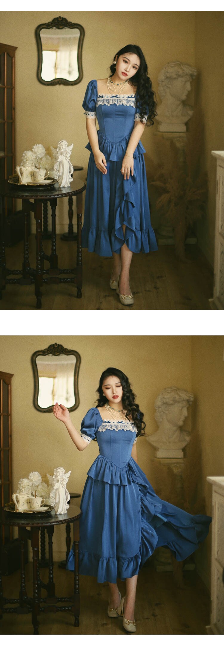 Атласное платье миди с разрезом и корсетными спицами