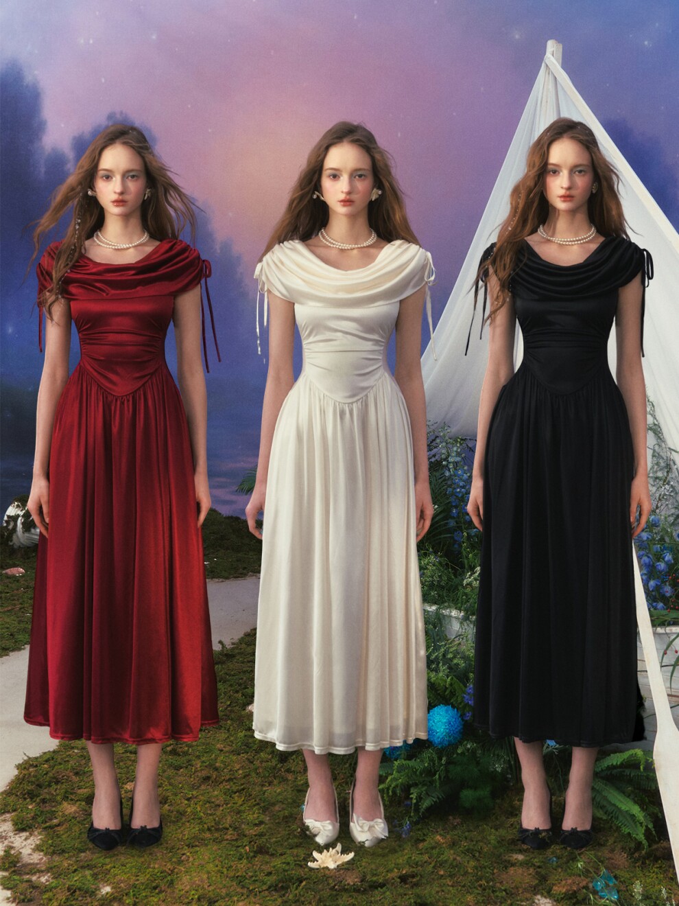 Атласное платье со спущенными плечами от Lacemade