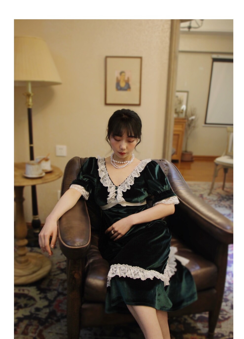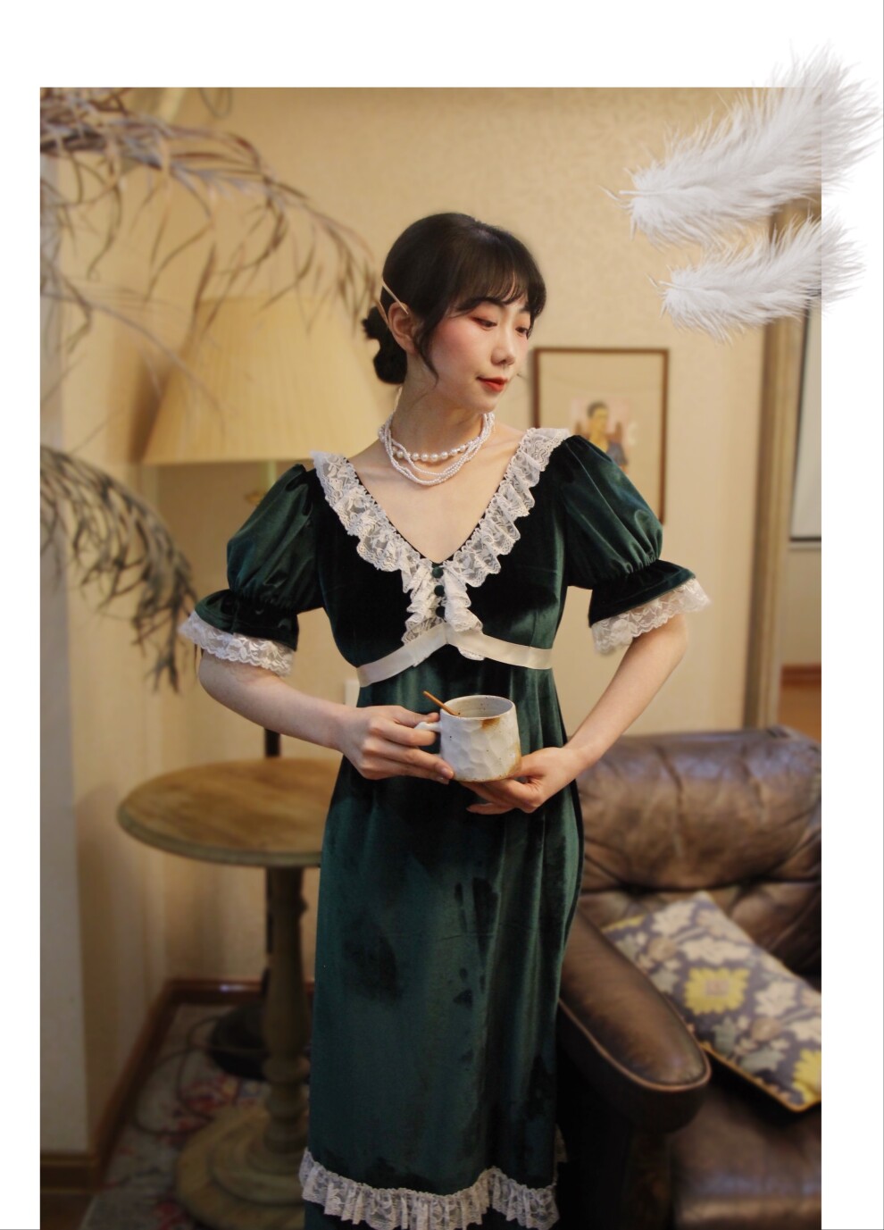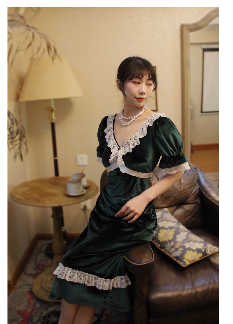 Бархатное платье с кружевами