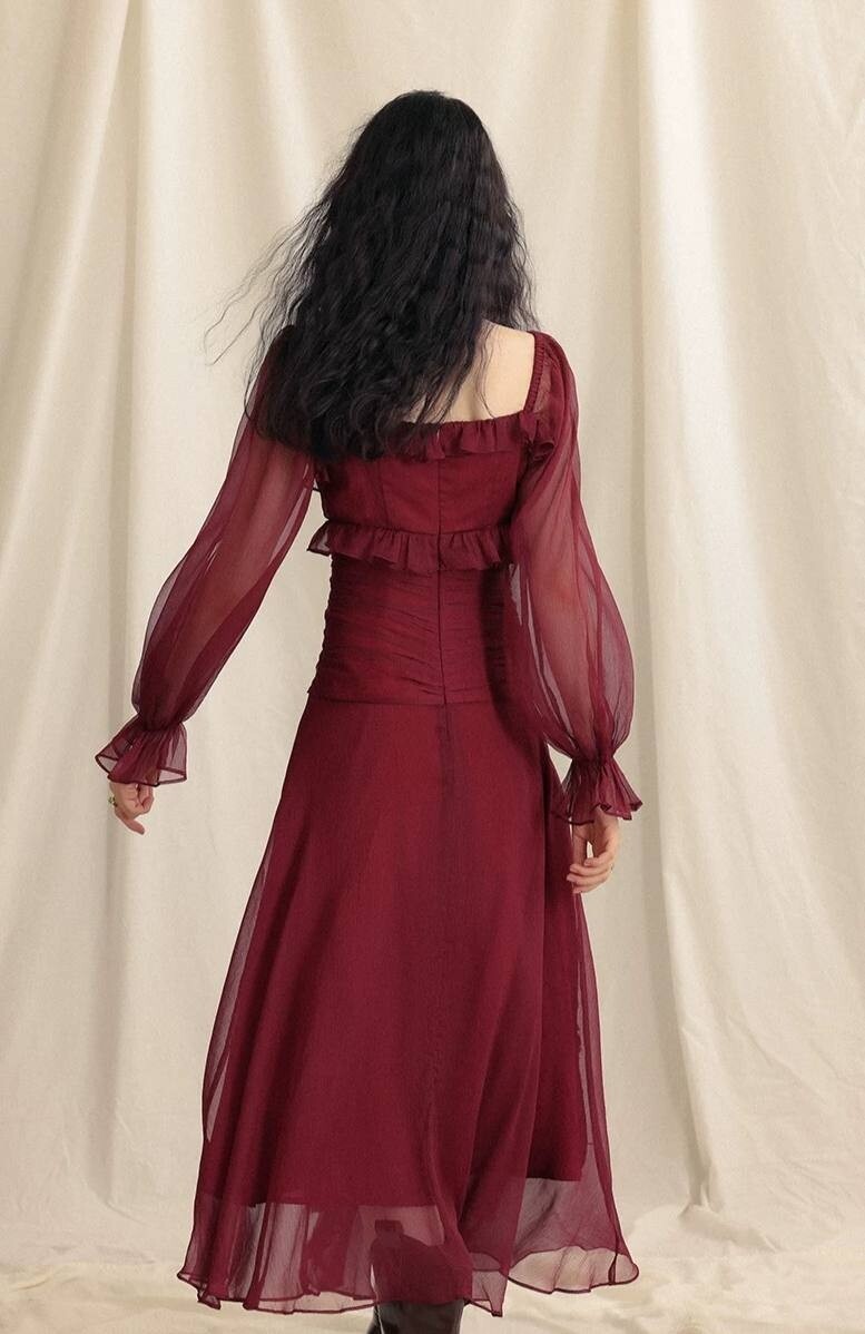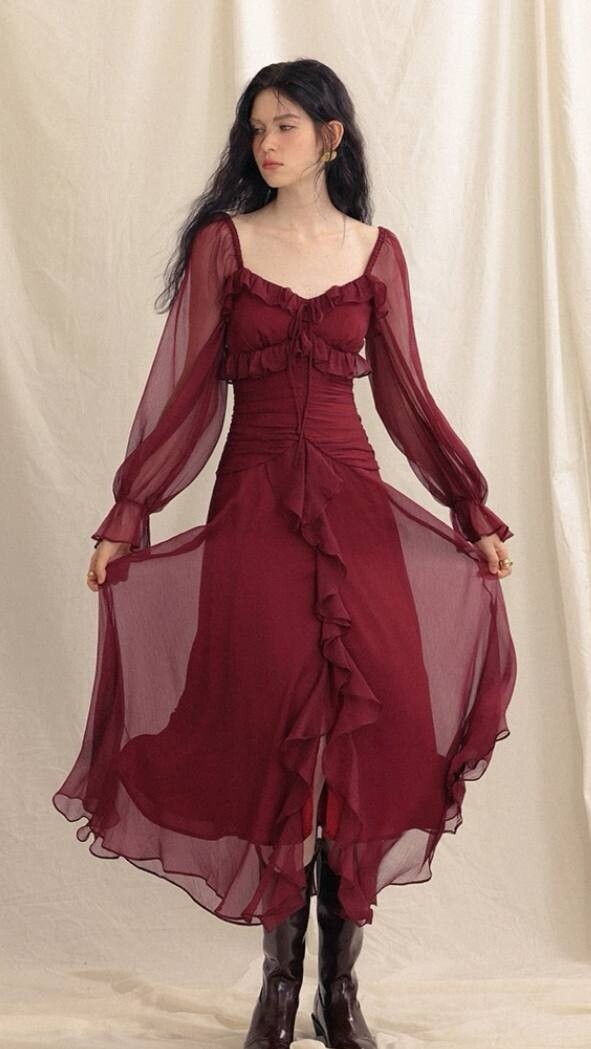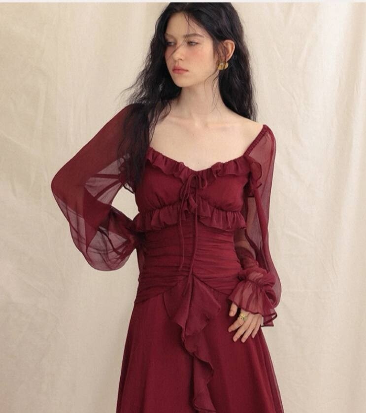 Чайное красное платье в французском стиле