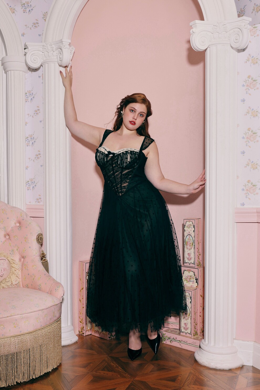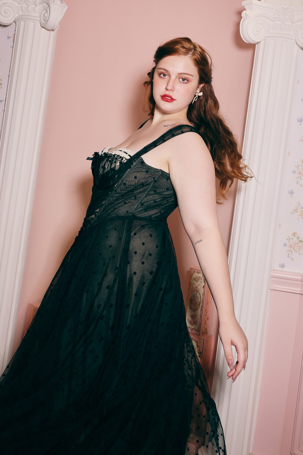Черное платье в горошек от Lacemade