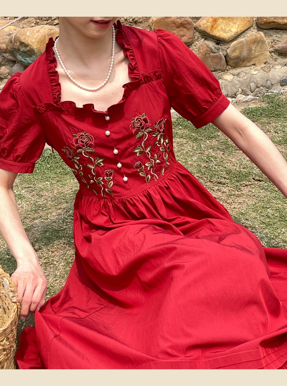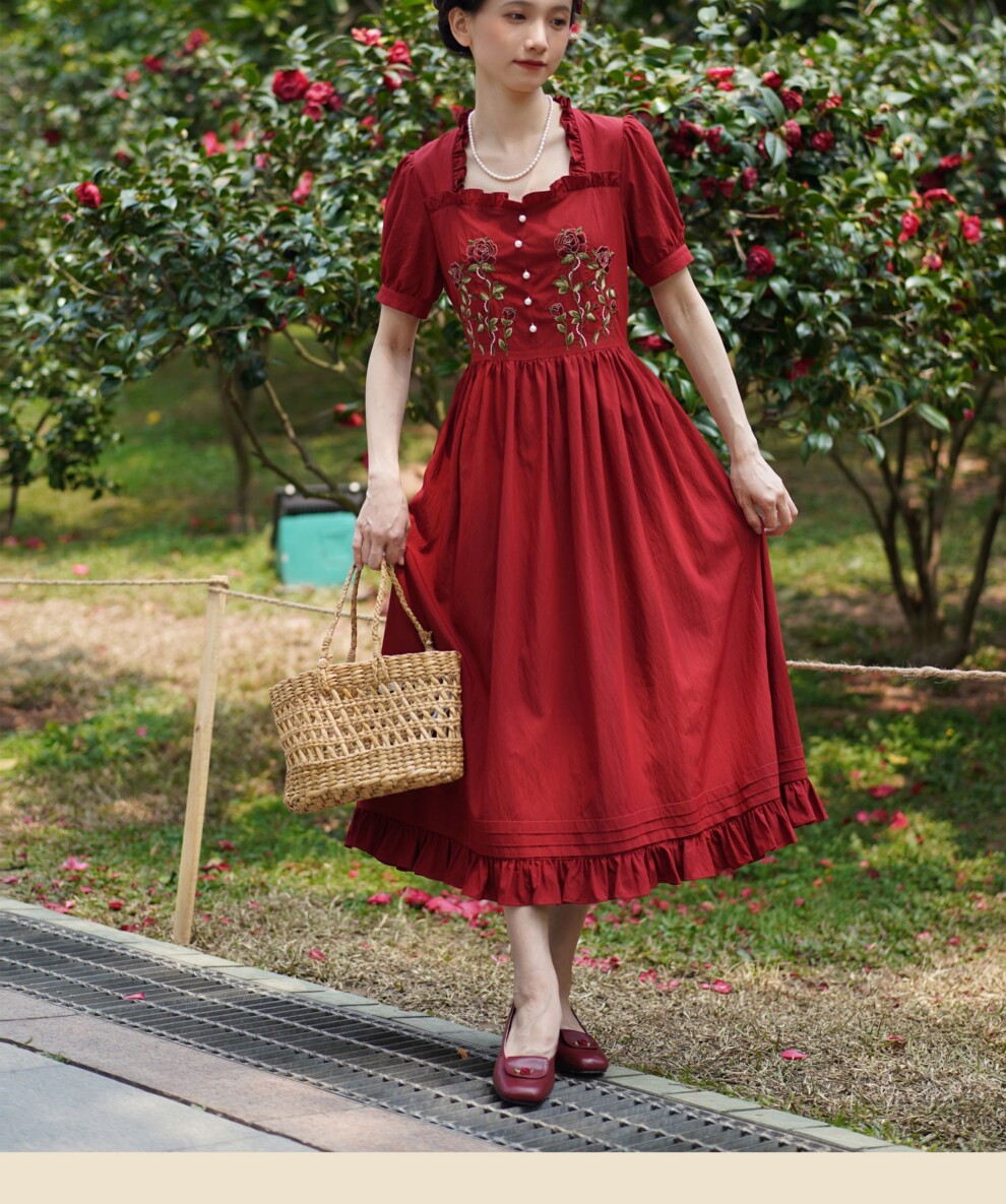 Миди платье в винтажном стиле с вышивкой "розы"