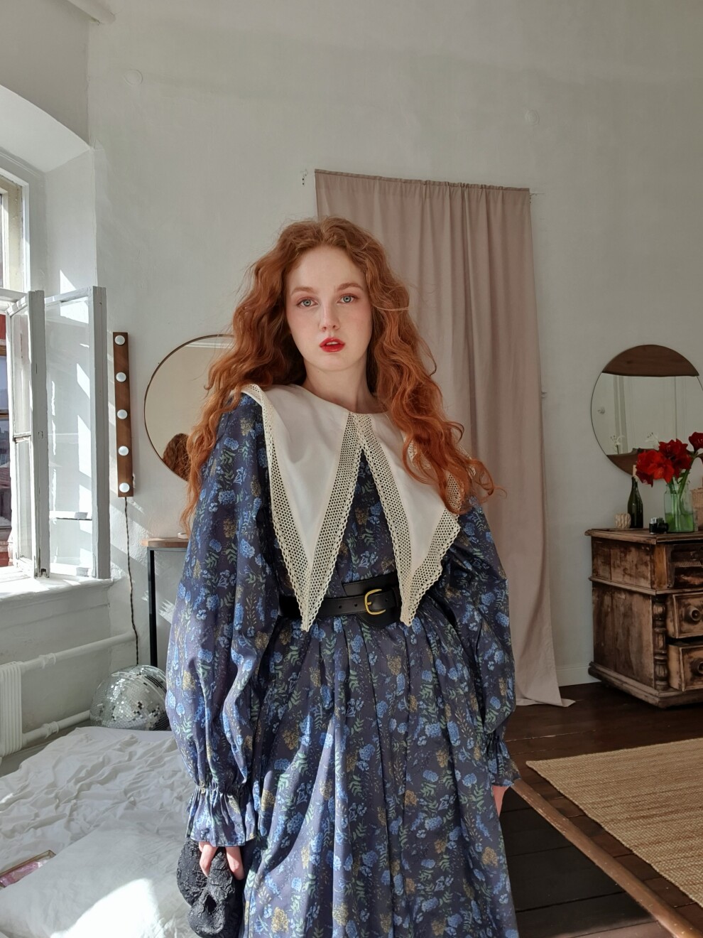 Оверсайз платье с объемным воротником в цветочек