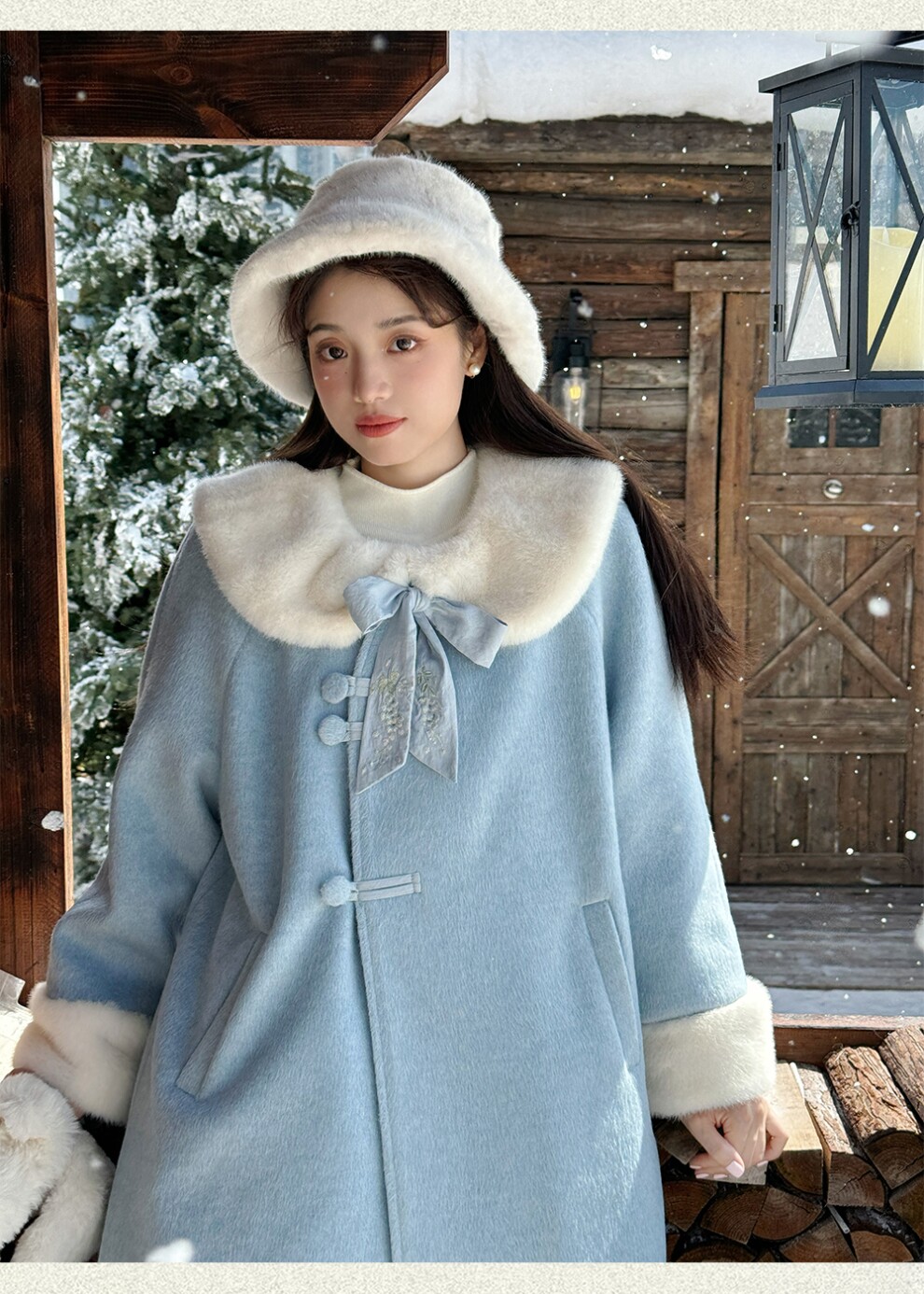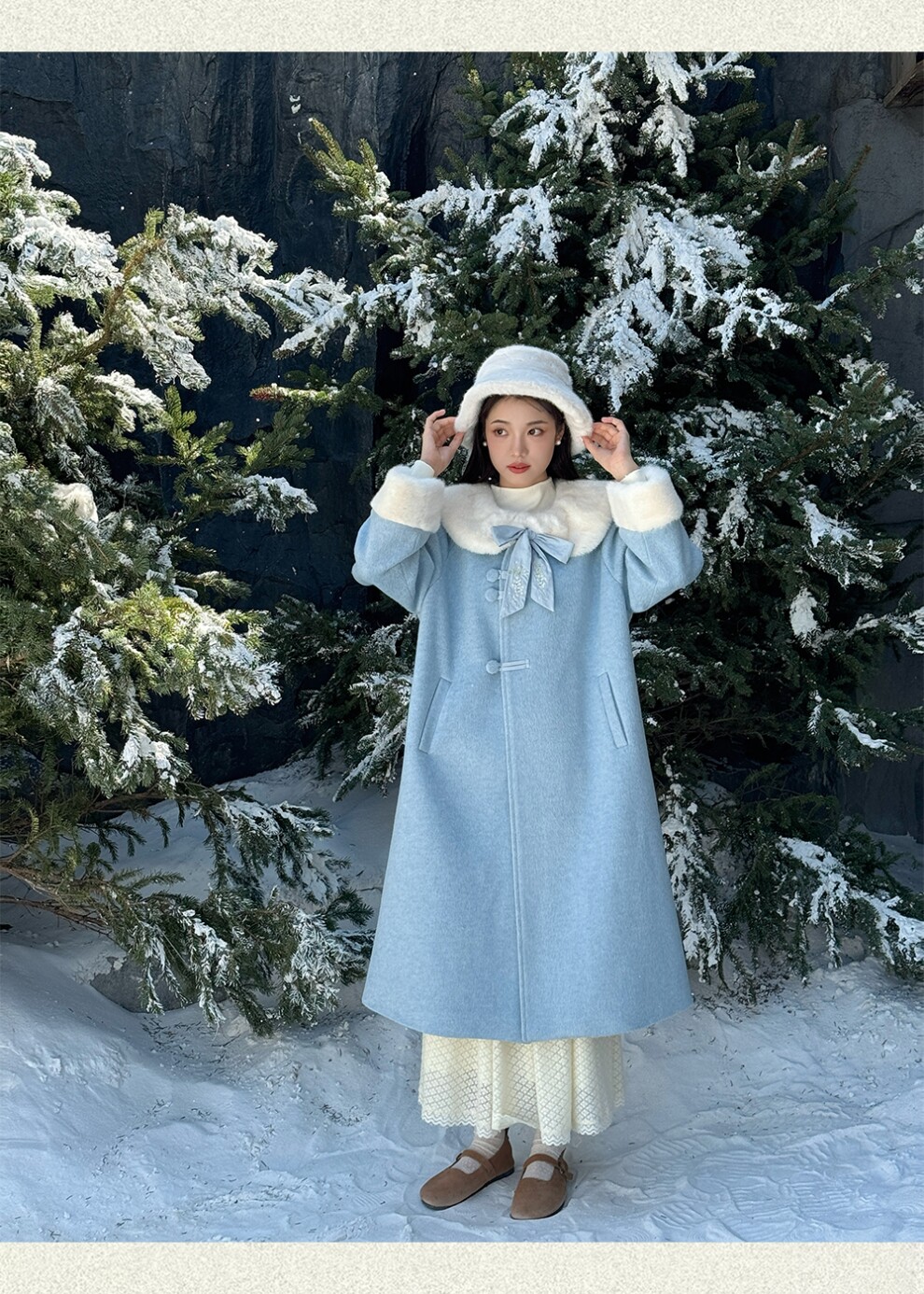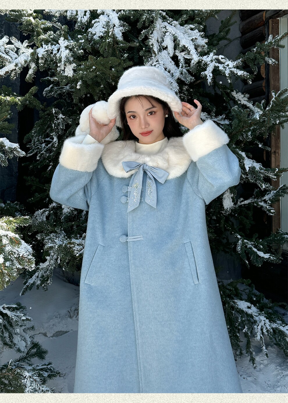 Пальто с объемным воротником и бантом