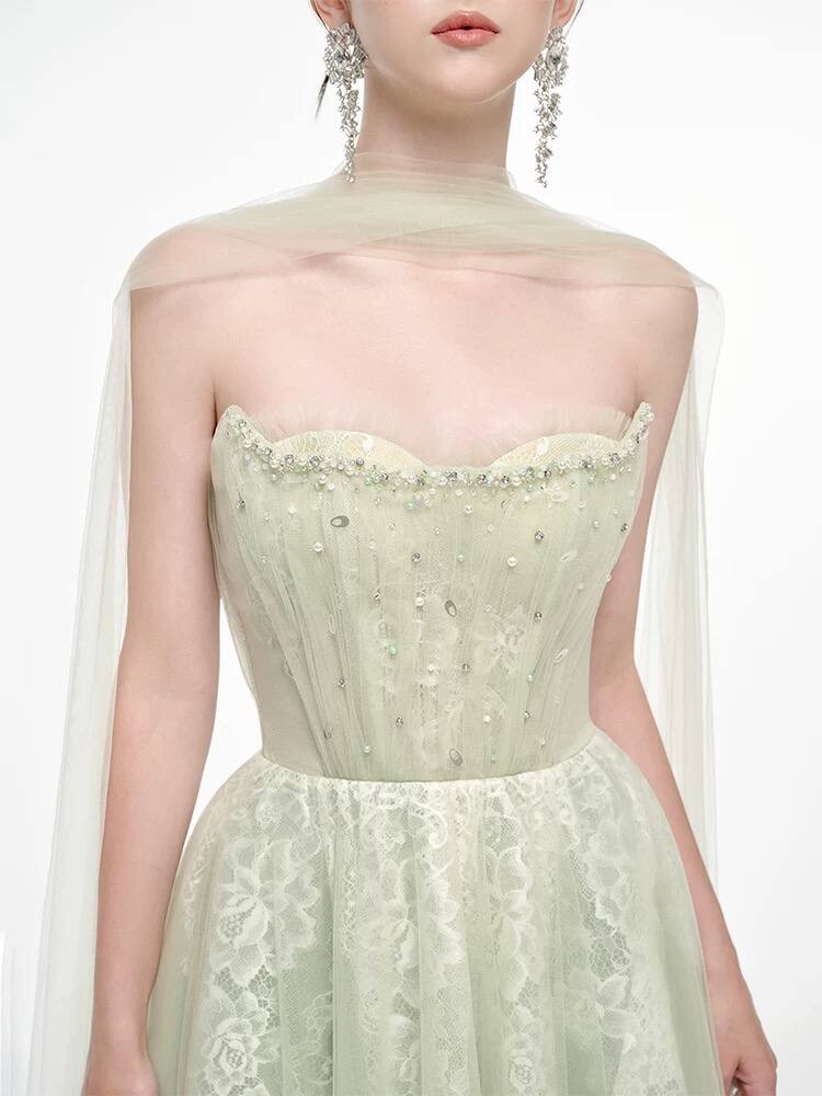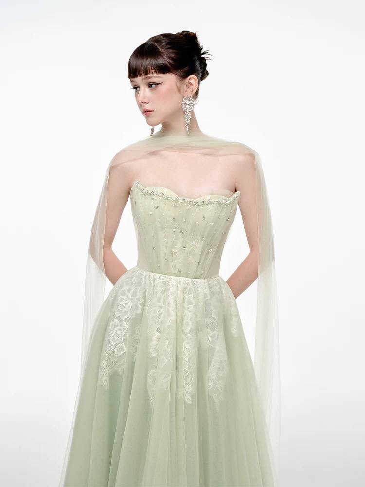 Платье дизайнерское на выпускной А-силуэта с открытми плечами
