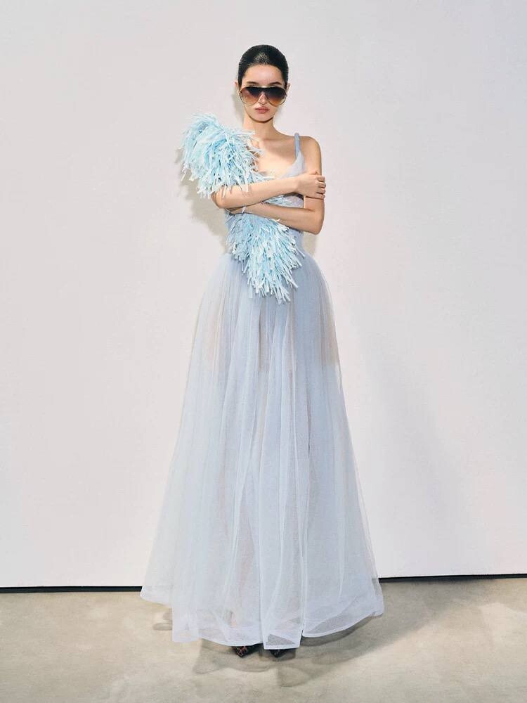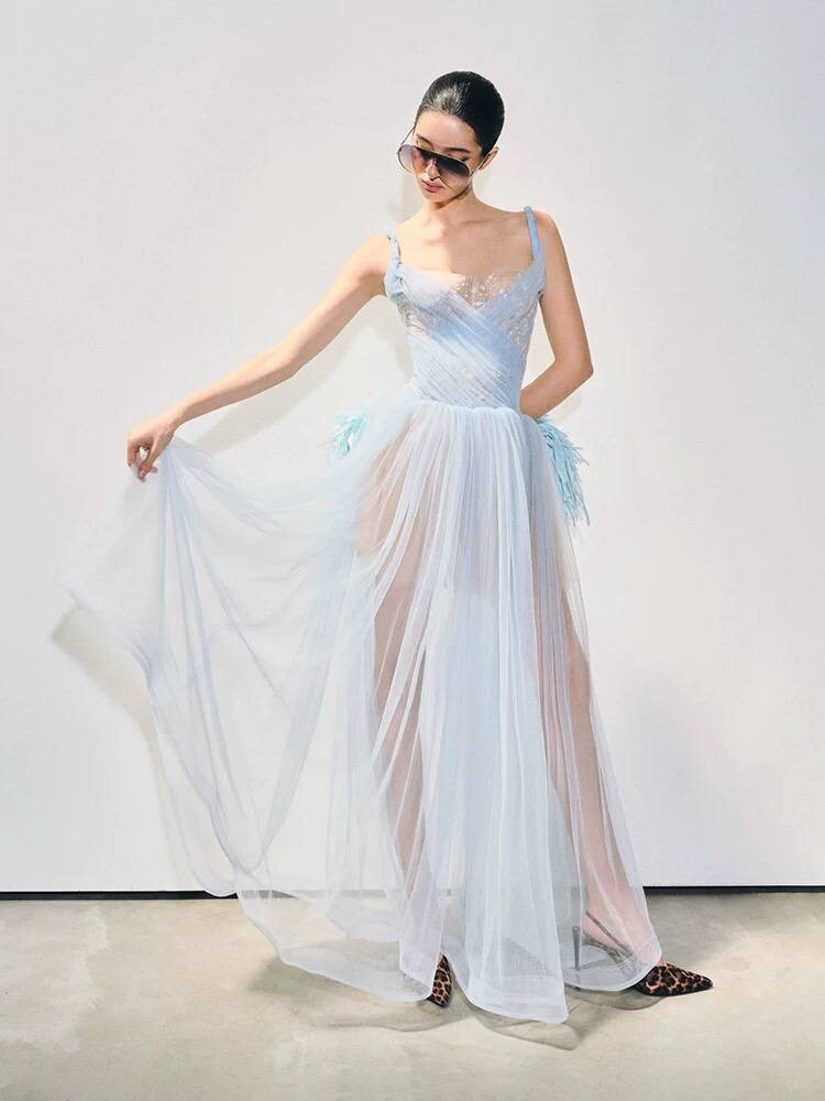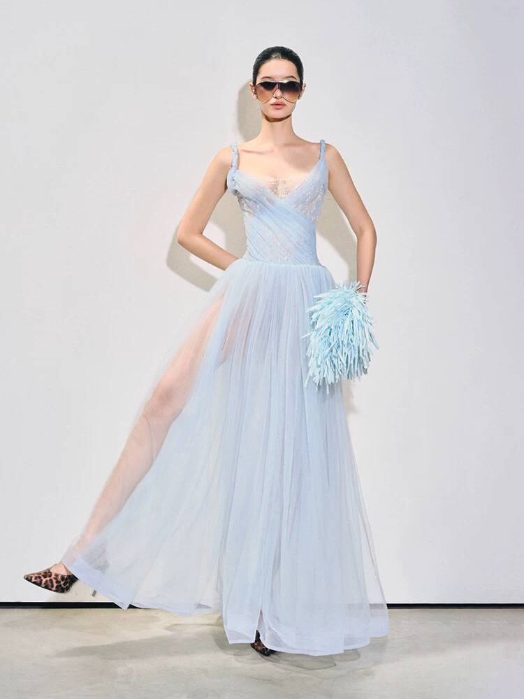 Платье-макси на выпускной А-силуэта на бретелях