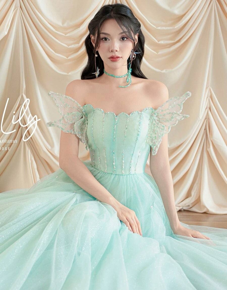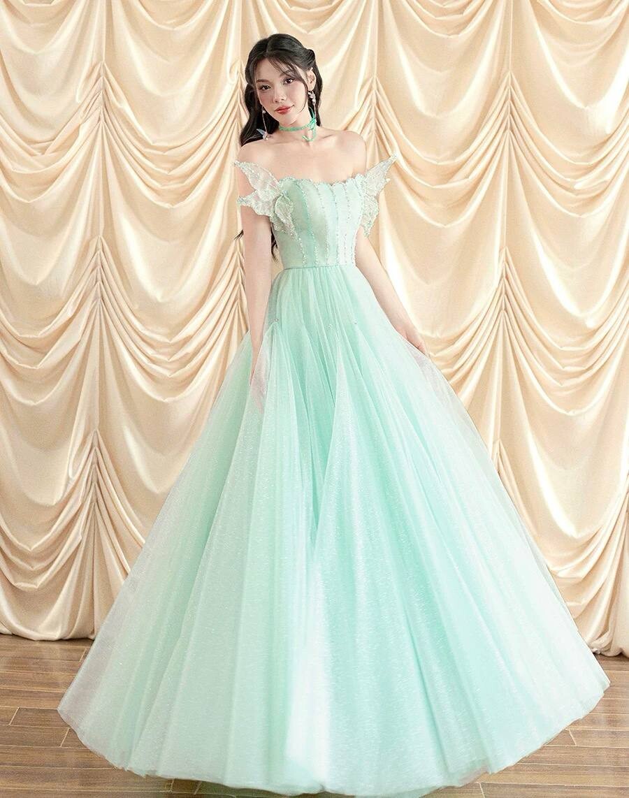 Платье-макси на выпускной А-силуэта с дизайнерскими крыльями бабочки