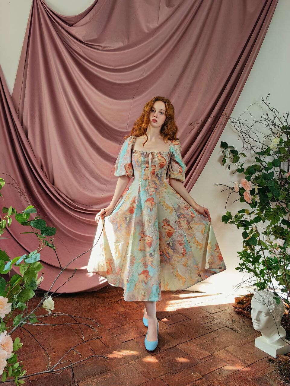 Платье миди с картиной