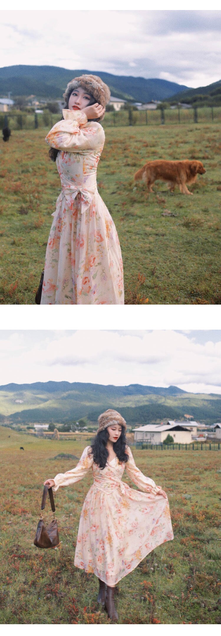 Платье миди в винтажном стиле с бантами