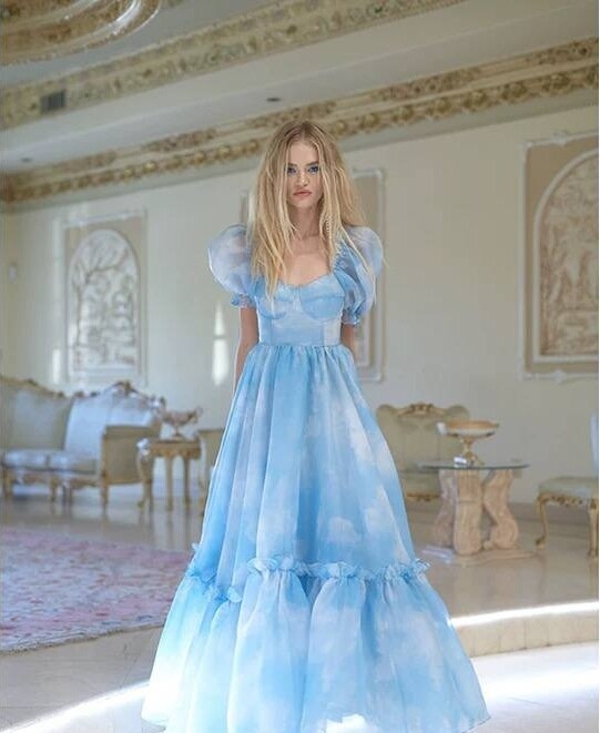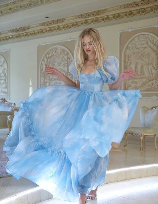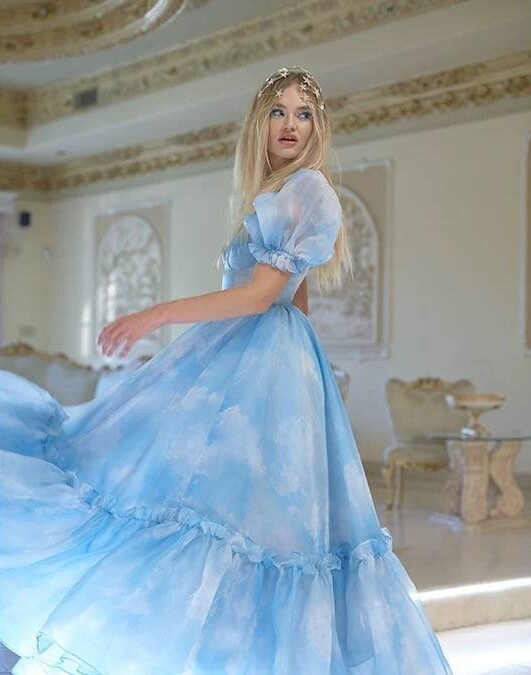 Платье принцессы макси в голубом цвете