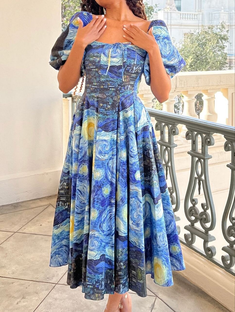 Платье с узором в стиле Ван Гога длины миди