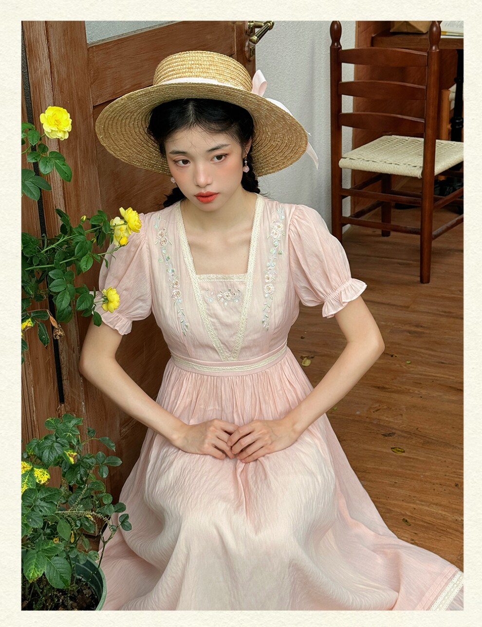 Платье с вышивкой и рукавами-фонариками