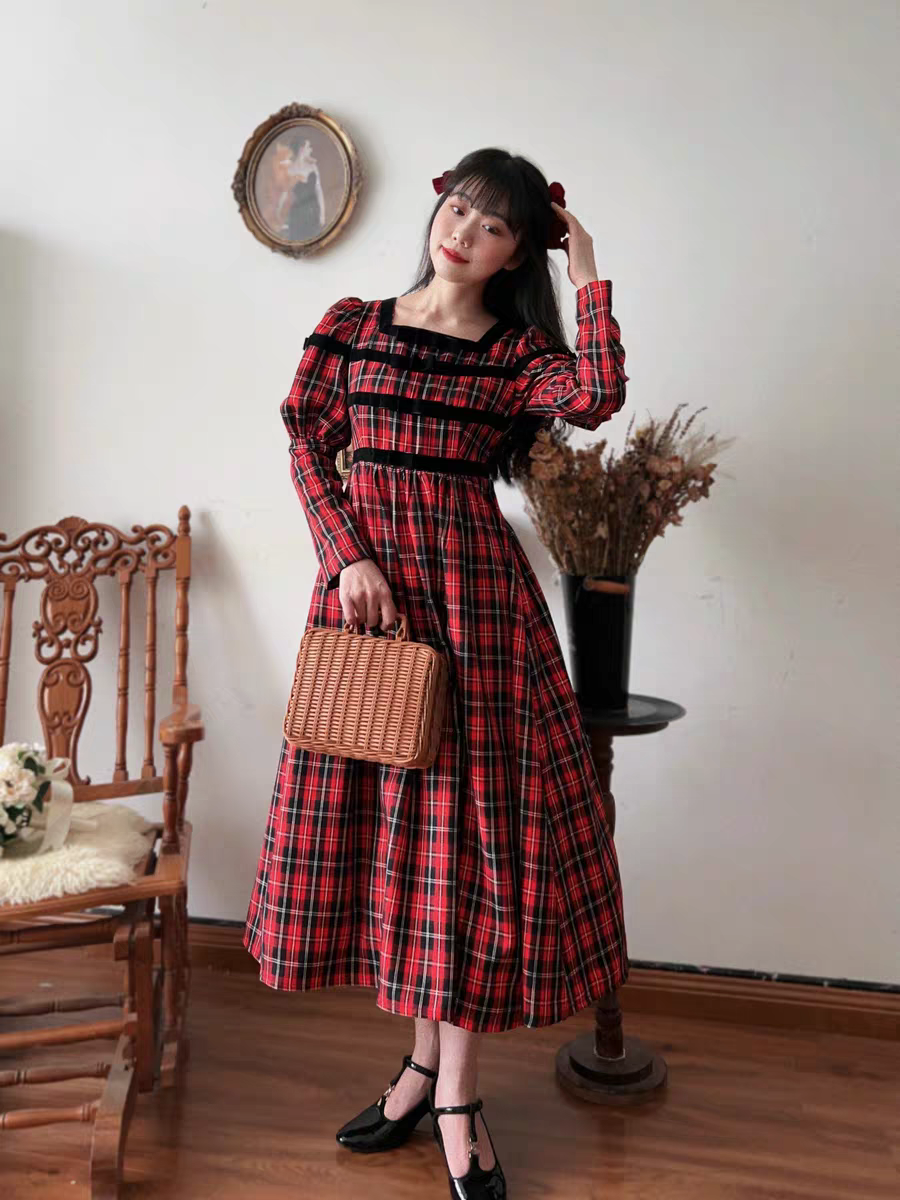 Платье в клетку в винтажном стиле