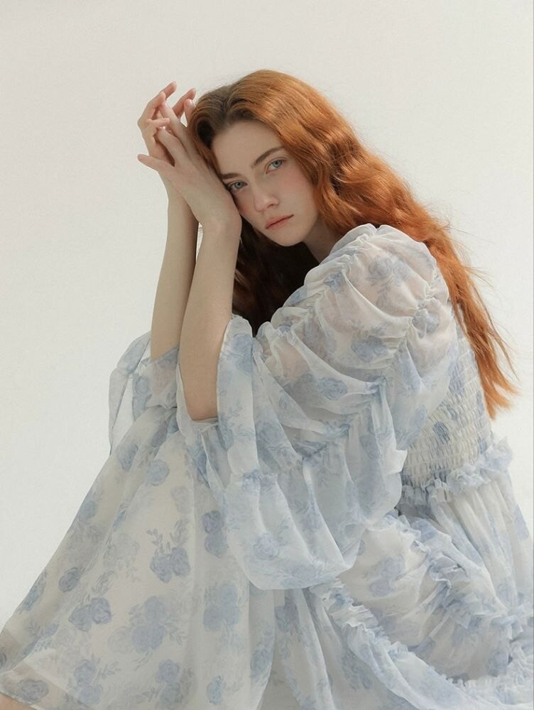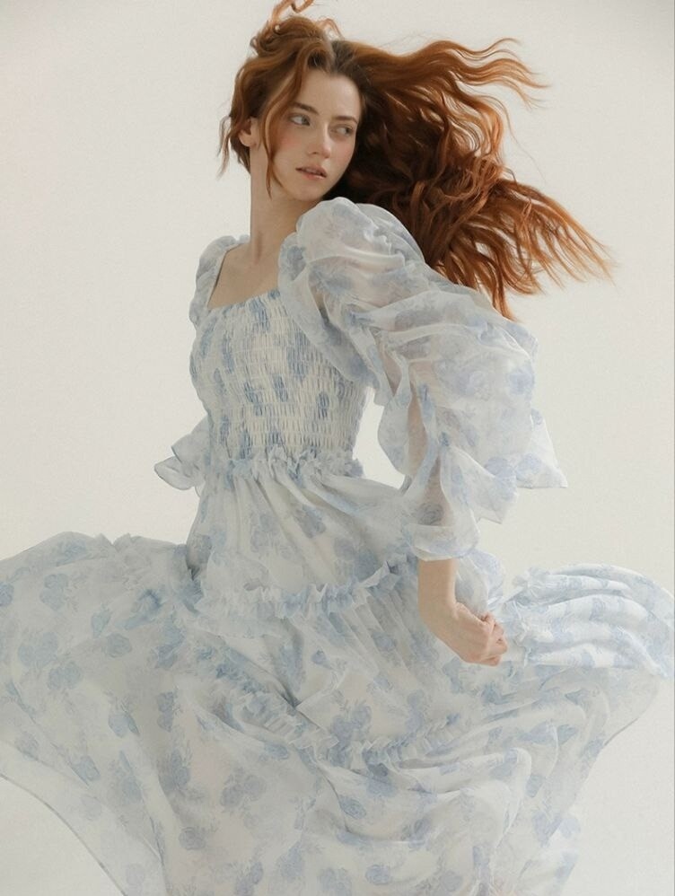 Платье воздушное с голубыми цветами
