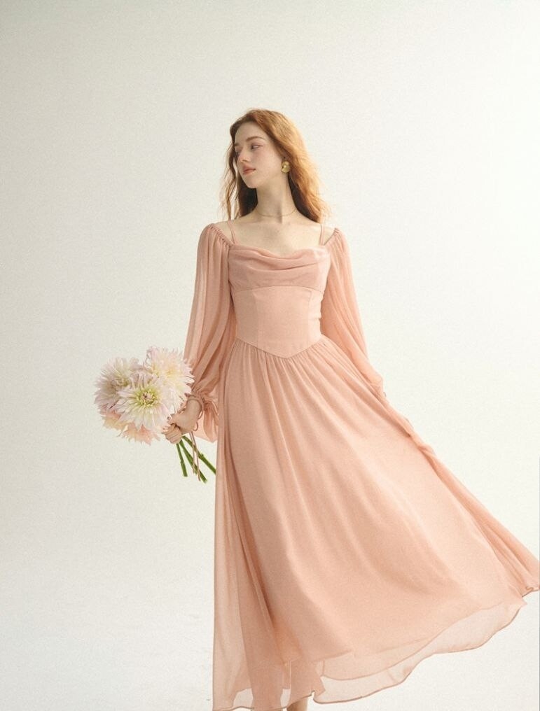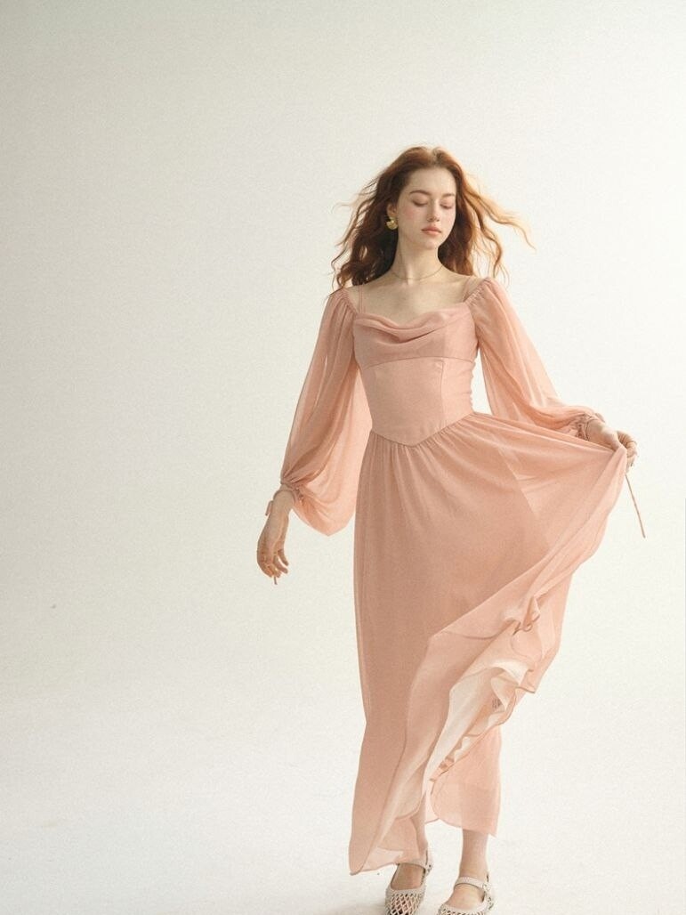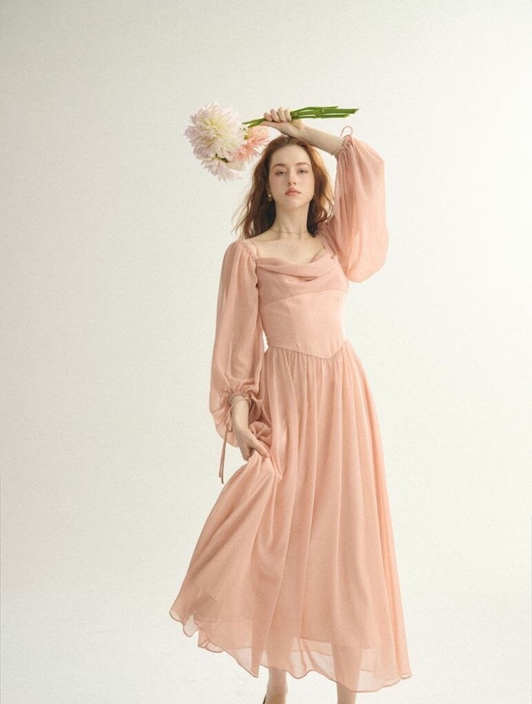 Романтичное легкое платье с объёмными рукавом