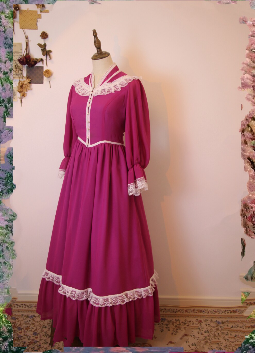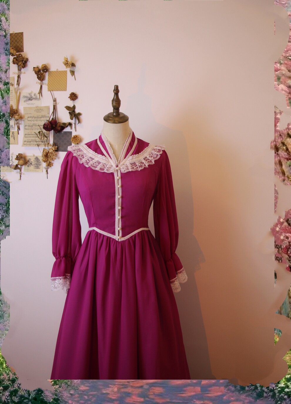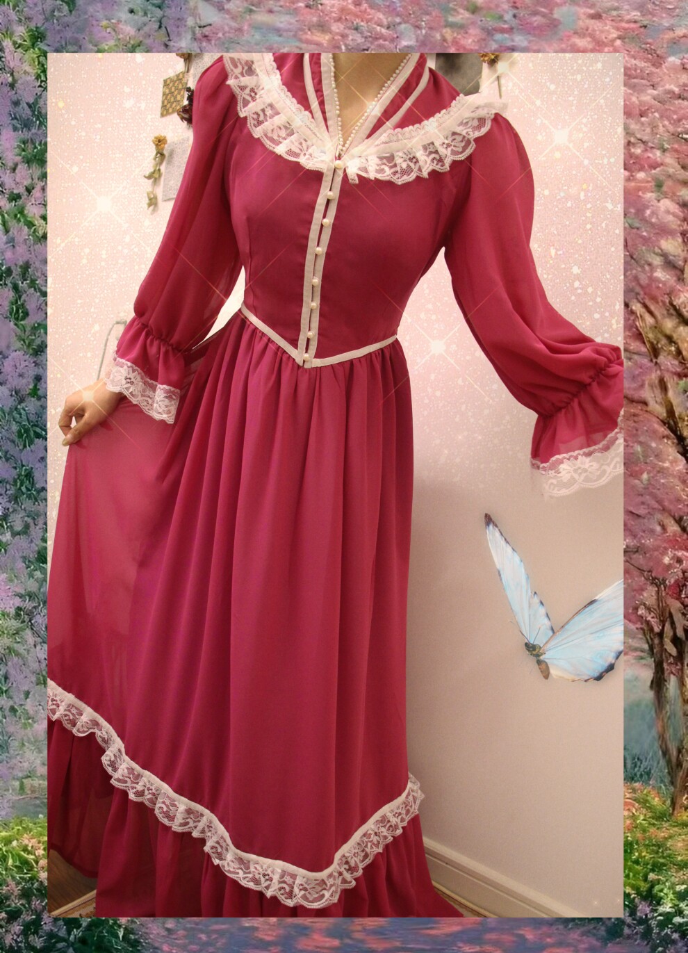 Винтажное платье с пуговицами и кружевом