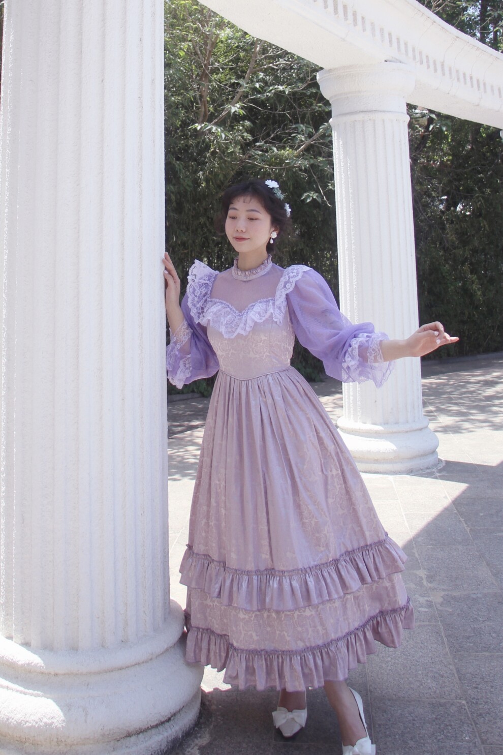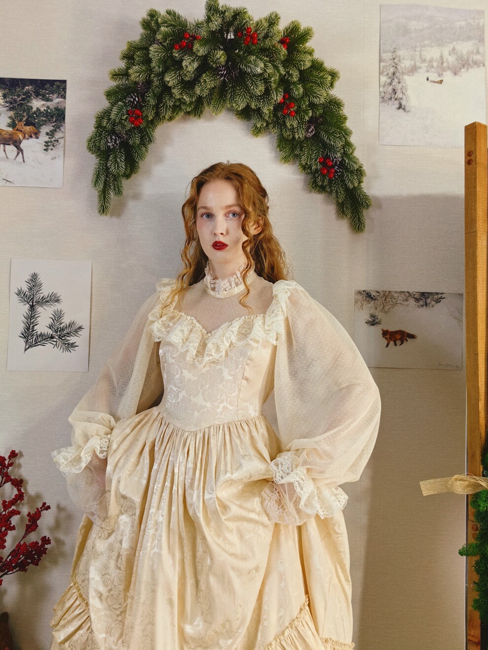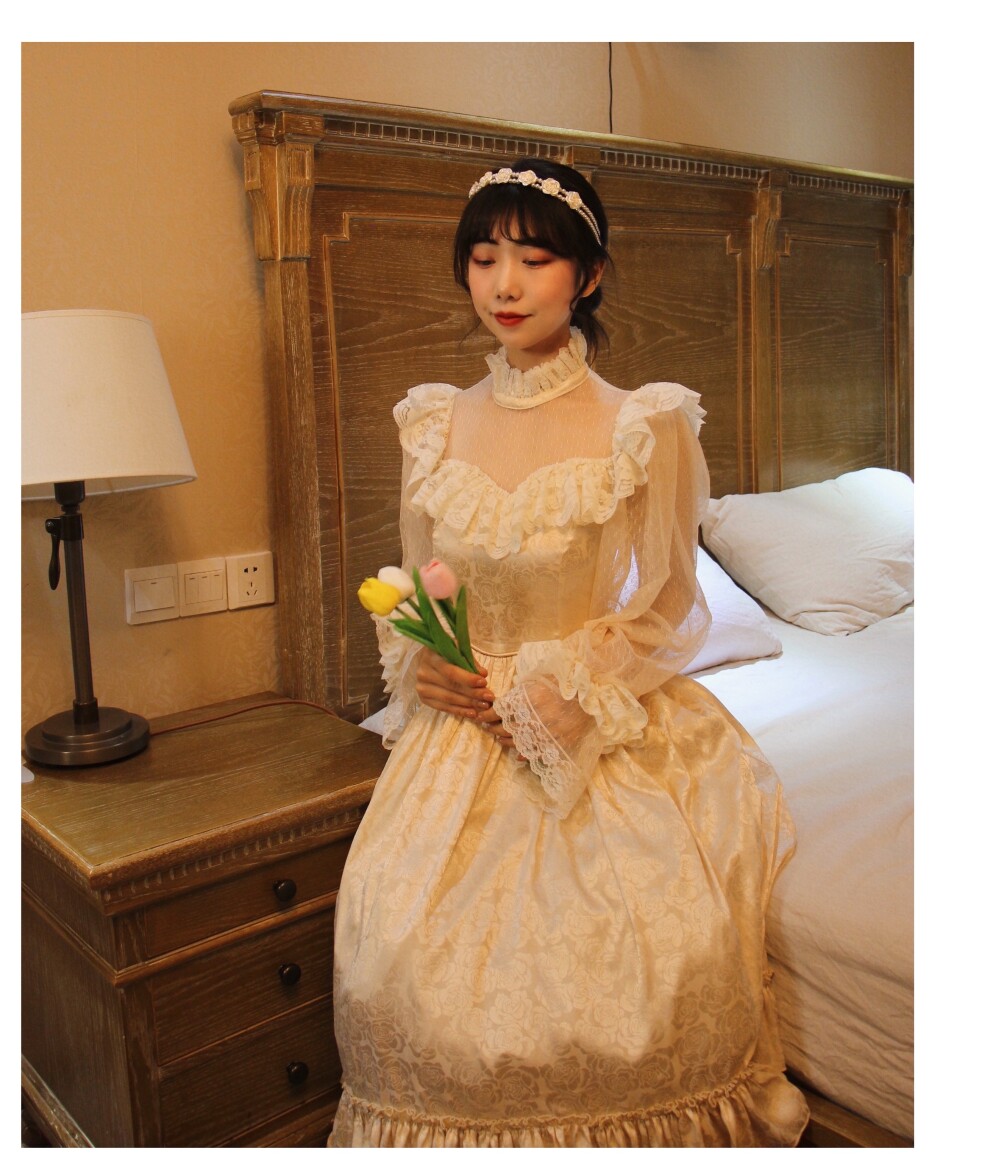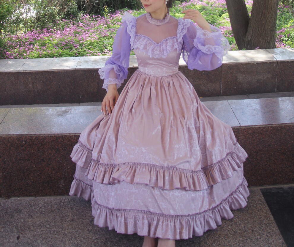Винтажное платье с воротником-стойкой и кружевом