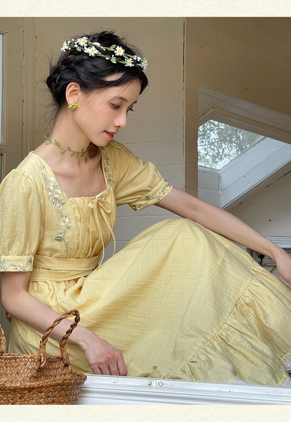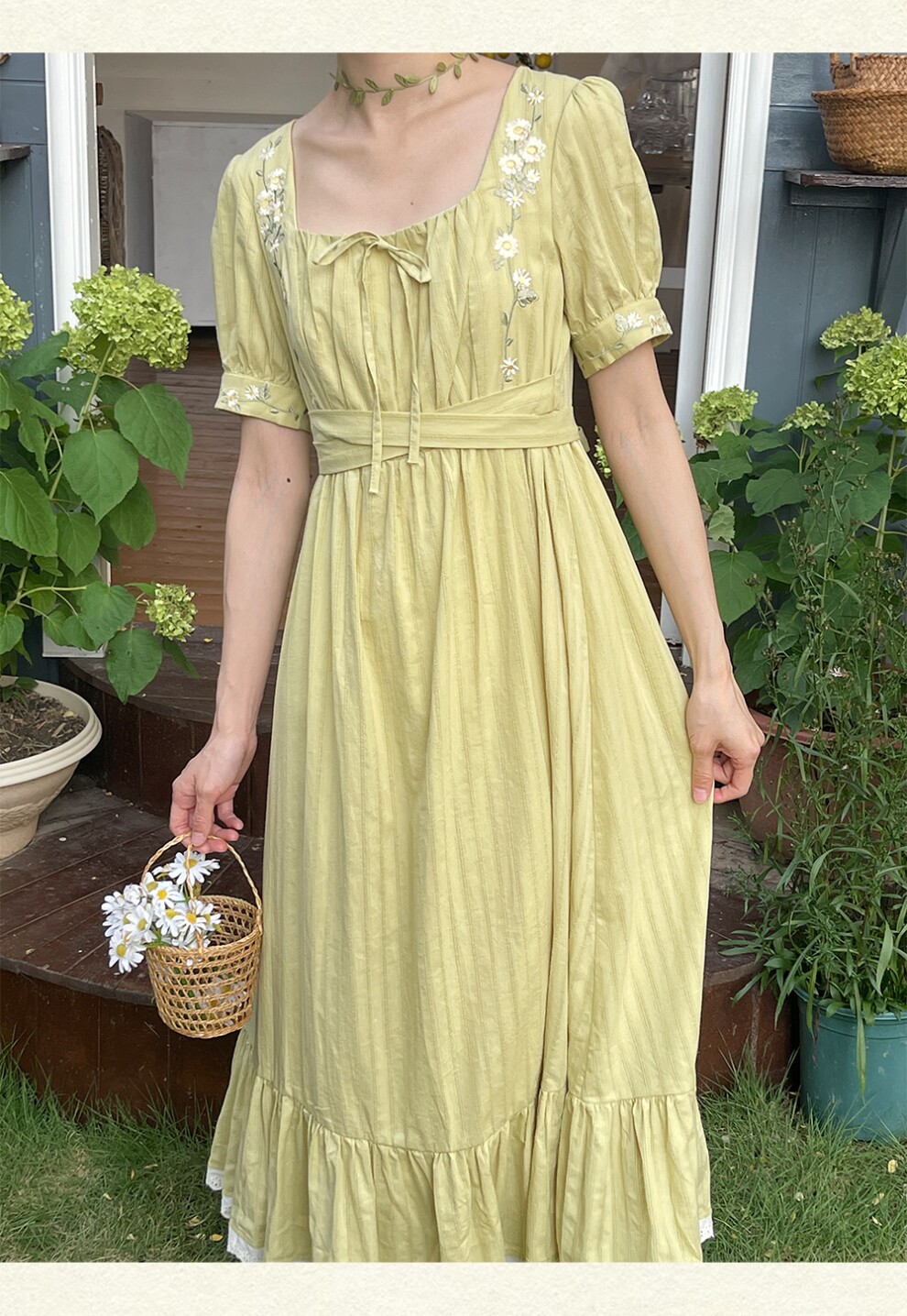 Винтажное платье с завязкой и вышивкой